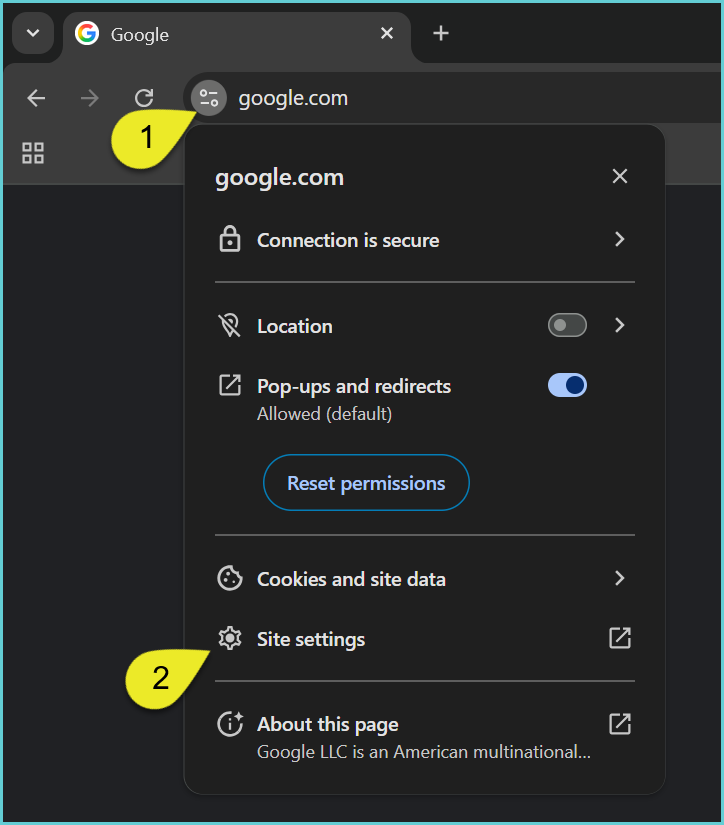 Instructions to set JavaScript, Popups, Images, and Sound to ALLOW. It can be used when addressing multiple settings instead of sending numerous sets of instructions. Updated instructions based on changes in Google Chrome Version 142.