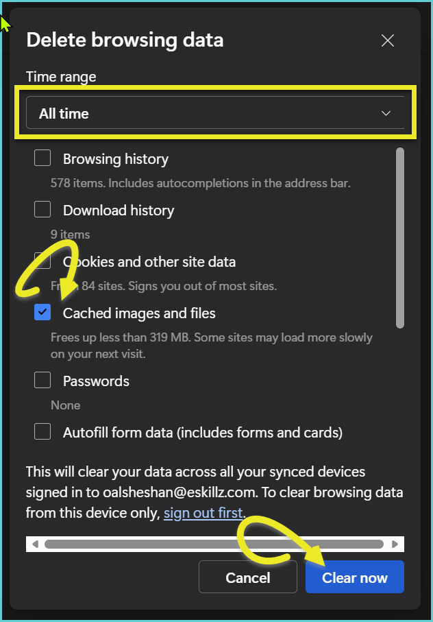 Instructions to clear Cache. Updated instructions based on changes in Microsoft Edge Version 142.