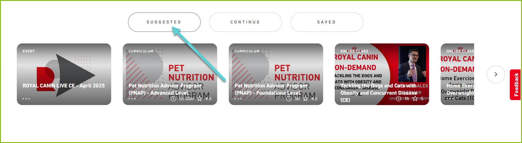 Kindly note that training recommendations can be found under the 'Suggested' tile on the home page.
