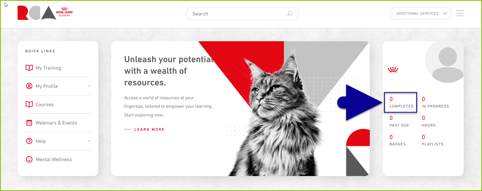 1. Under the "Quick Links" section on the Royal Canin Academy's homepage, click on "My Profile."
